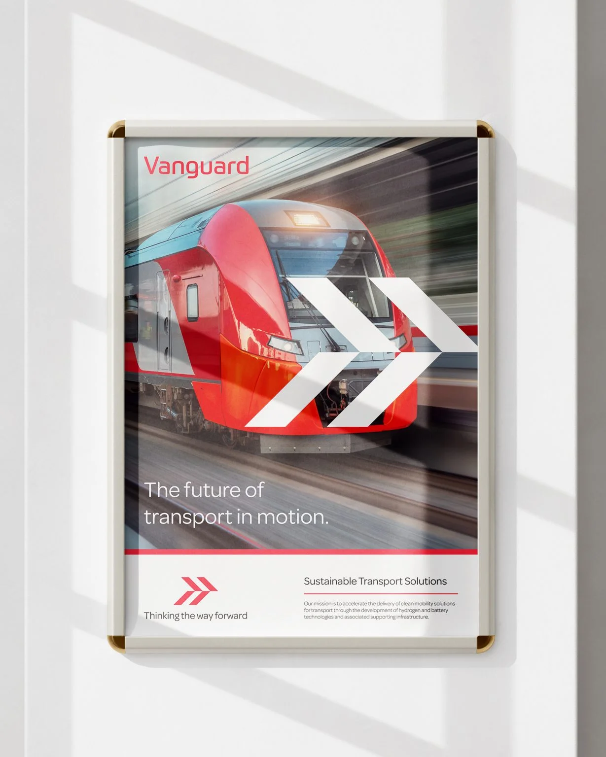 The new identity positions Vanguard as a credible, progressive force in clean mobility. With a strong visual symbol and adaptable design system, the brand now connects with stakeholders and supports their mission to think the way forward for sustainable transport.